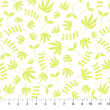 Hand Stitched Quilt Fabric Plants White