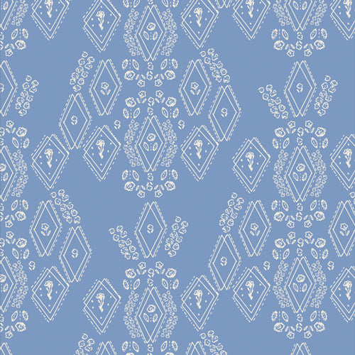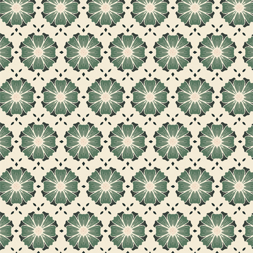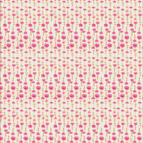 Quilting fabric with a floral pattern in peach color, featuring detailed illustrations of flowers and foliage.