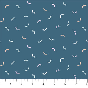 Hand Stitched Quilt Fabric Tossed Leaves Navy