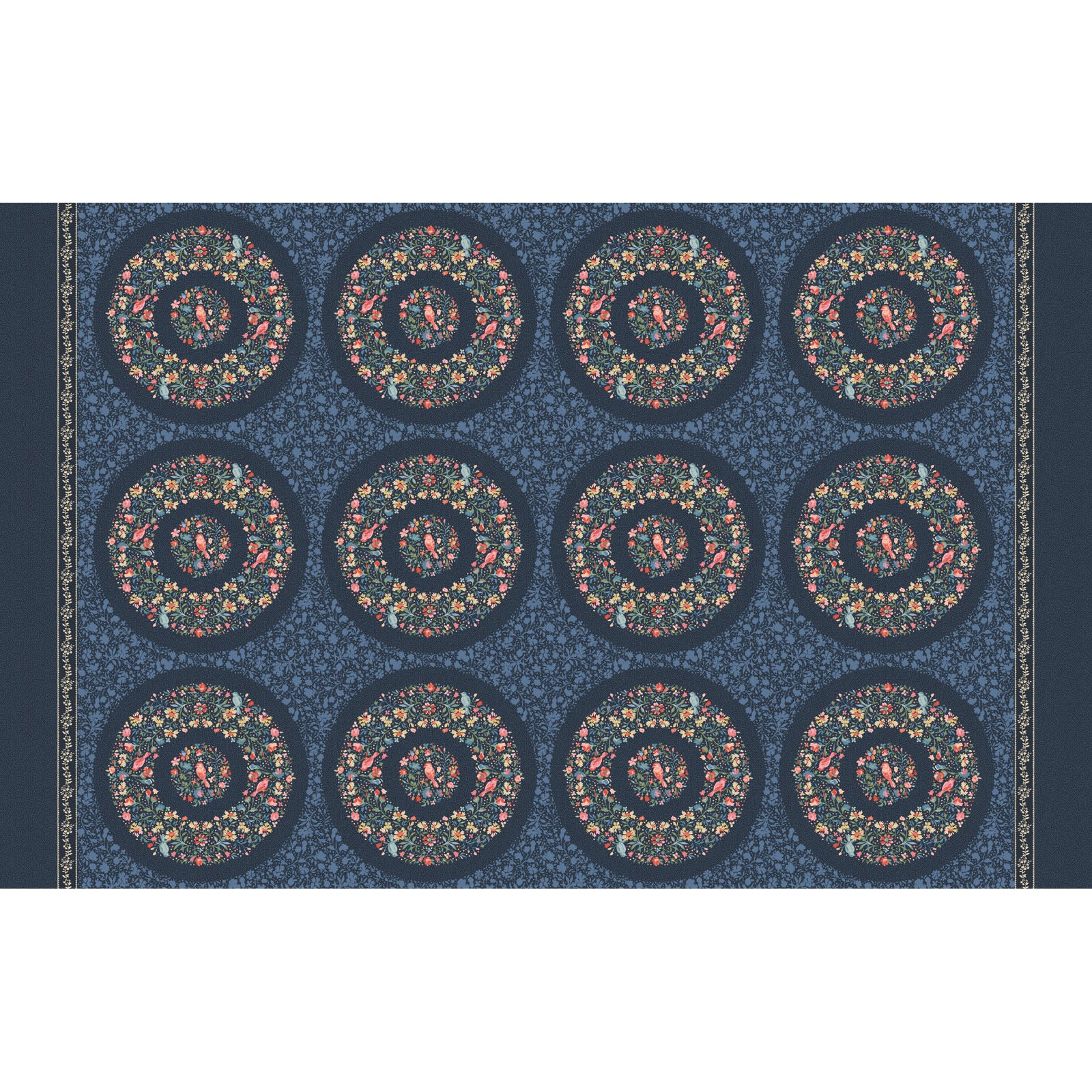 Old Blue Calicos Quilt Fabric Flower Maze Navy