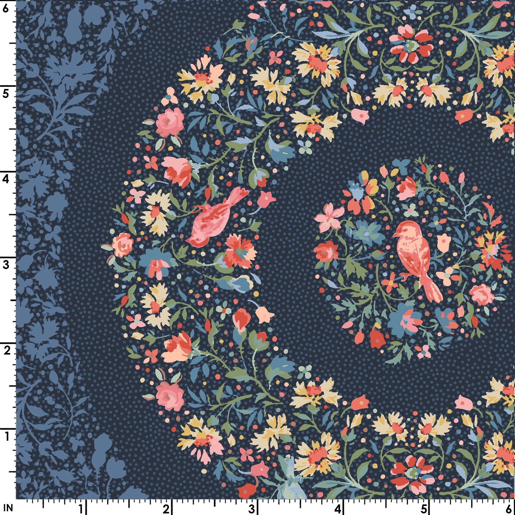 Paula's Companions Quilt Fabric Flower Vine Navy