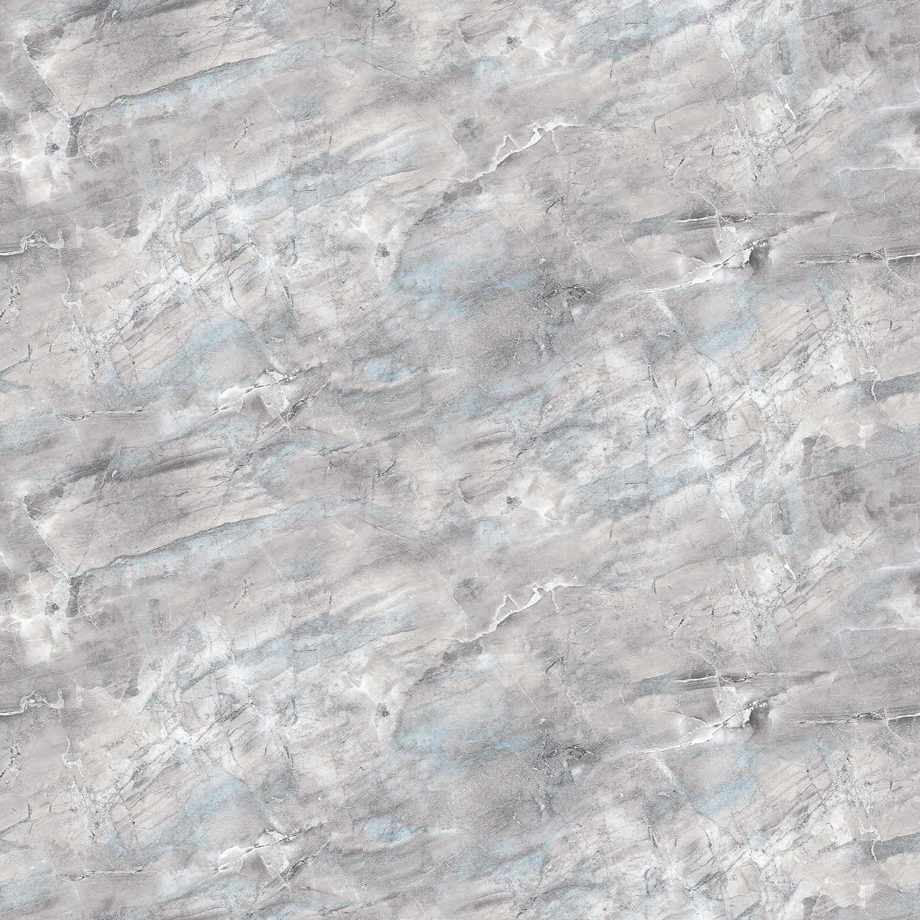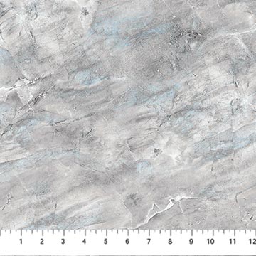 A close-up of a quilting fabric featuring a marble-like pattern in grey tones with a frost effect.